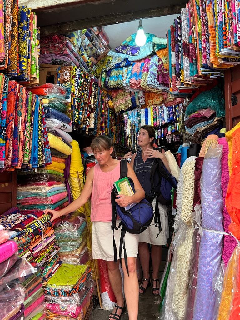 - Ut i Freetowns myller för att köpa tyger, beställa väskor och inhandla material till skolan.